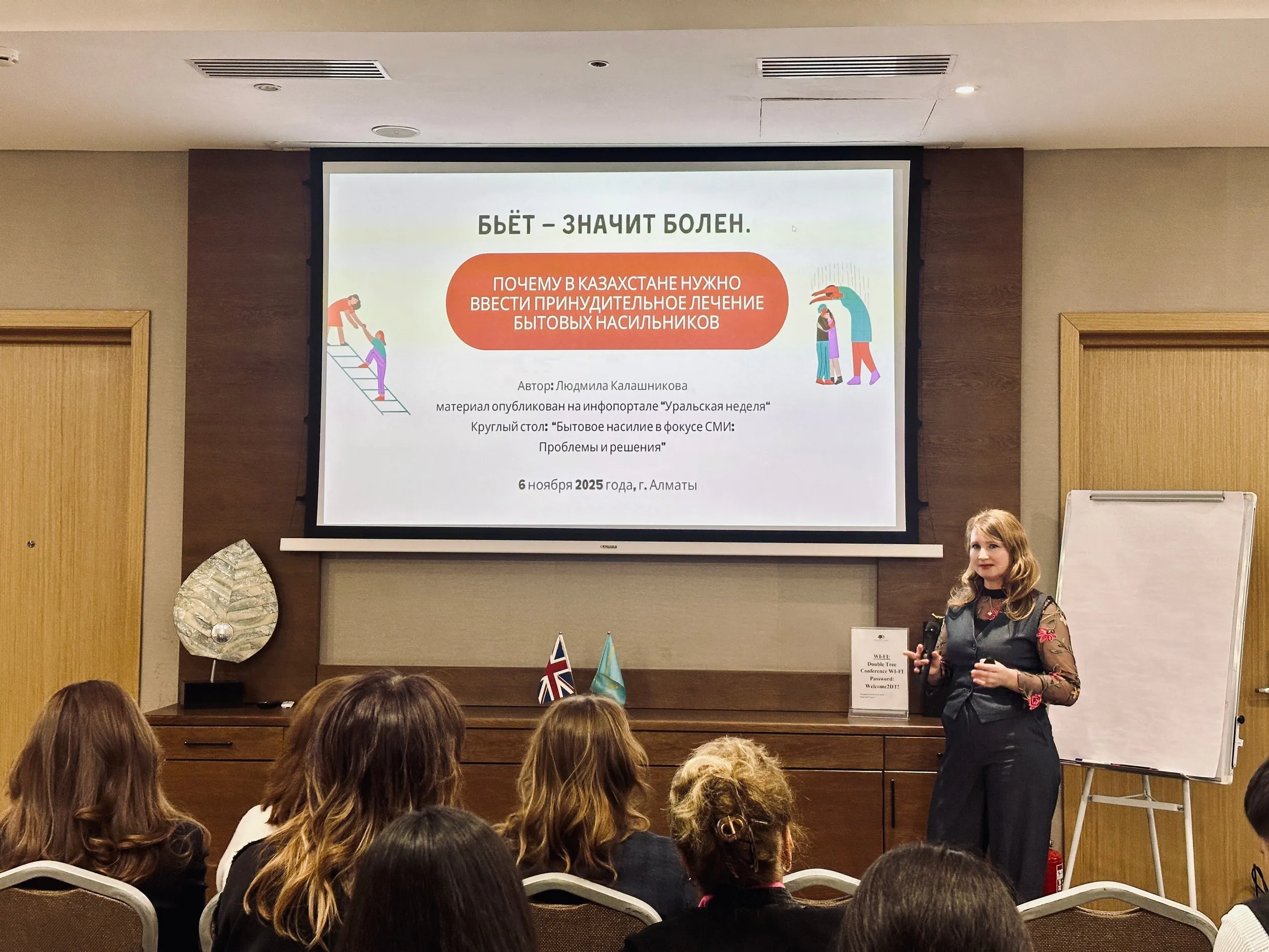 6 ноября 2025 года в Алматы состоялся круглый стол и практикум для журналистов на тему «Бытовое насилие в фокусе СМИ: Проблемы и решения», организованный Международным фондом защиты свободы слова «Әділ сөз» в рамках проекта «Лаборатория журналистики решений-II», реализуемого при поддержке Посольства Великобритании в Казахстане